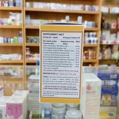 Viên uống sinh lý nam Maca # 6 giúp tăng cường chức năng thận, tăng năng lượng và sức chịu đựng cho cơ thể, tăng phục hồi trương lực cơ, giảm bớt mệt mỏi, tăng ham muốn tình dục.